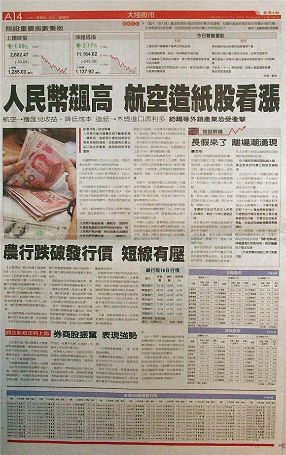 人民幣兌美元匯價近期不斷創新高,讓航空、造紙等升值受益類股近期表現相對強勁,但紡織等主要以出口為主的產業,表現則相對受到壓制。