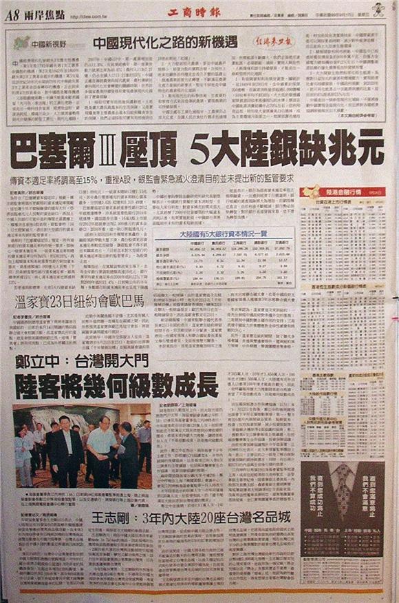 台灣主要報紙大陸版要聞標題一覽 (9月17日)