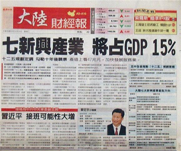 昨(18)日閉幕的中共第17屆五中全會一如預期,通過中共中央對「十二五」規劃建議稿,確定了未來五年大陸經濟社會的發展的架構,並提出保經濟平穩增長與保民生並重,而大陸國務院最新確定的七大戰略性新興產業,將在這五年挑起經濟結構轉型的重責大任。