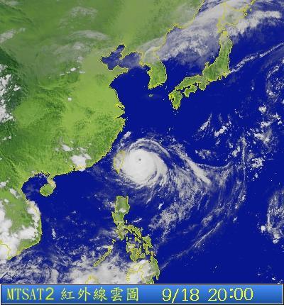 凡那比颱風18日晚上8時的衛星雲圖 (圖:中央氣象局)