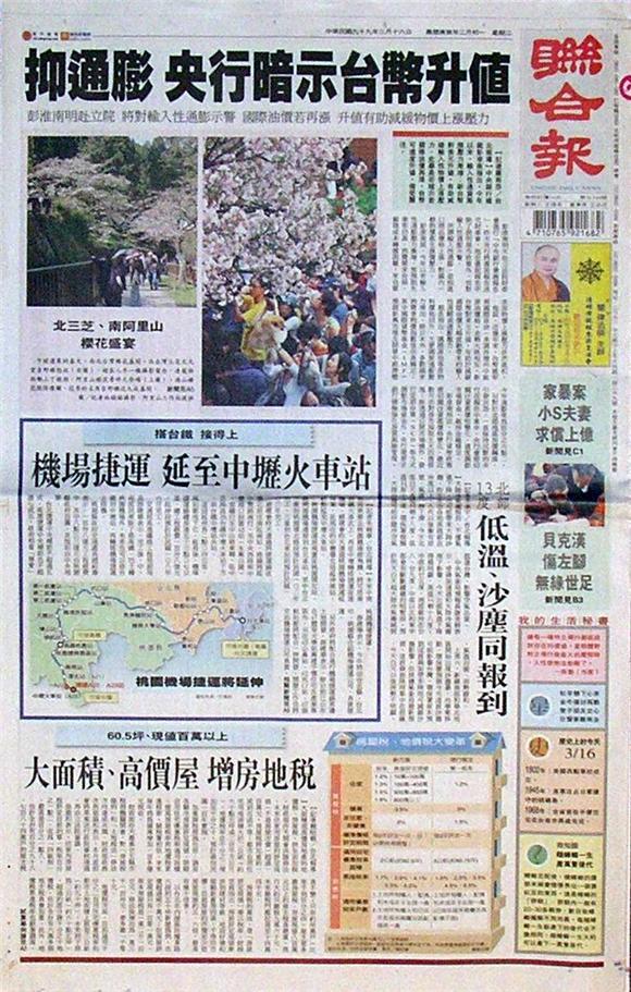 台灣主要報紙頭條要聞一覽 (3月16日)