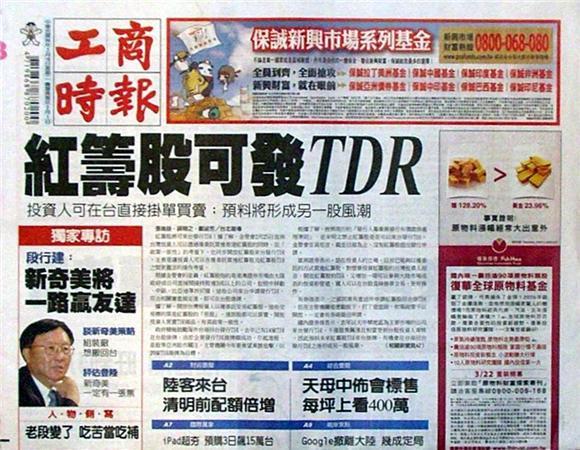 ◆工商時報:紅籌股可發TDR