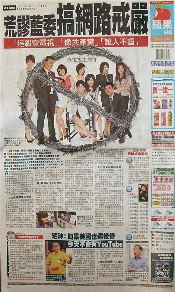 ◆蘋果日報:荒謬藍委 搞網路戒嚴