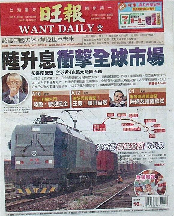 大陸央行無預警加息,在全球股匯市引發軒然大波。《華爾街日報》昨以「中國加息,方位衝擊全球市場」來形容其衝擊之大。台灣央行總裁彭准南警告,全球有近4兆美元熱錢流竄;大陸學者預期,今日公布的9月CPI數據可能破表,大陸正進入通膨時代,貨幣戰更可能因熱錢再升溫。