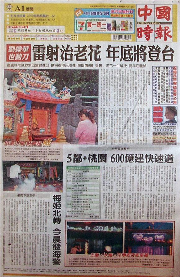 ◆中國時報:劉德華也動刀 雷射治老花 年底將登台