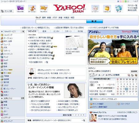 Yahoo Japan開始採用Google的搜尋引擎 (圖:Yahoo Japan首頁)