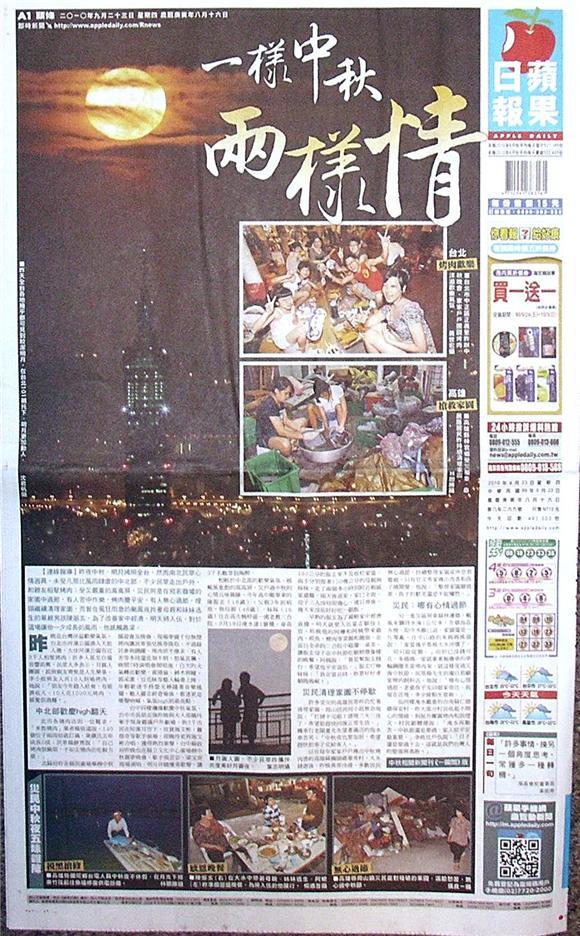 台灣主要報紙頭條要聞一覽( 9月23日)
