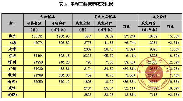 中國主要城市房地產每周交易數據情報(2010.10.18-24)