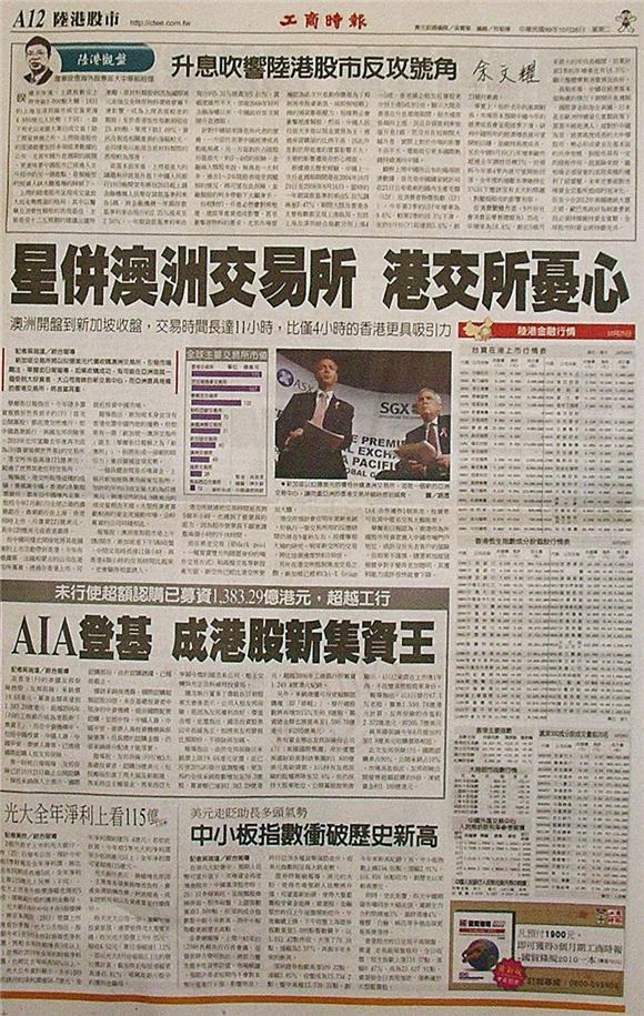 新加坡交易所將以82億美元代價收購澳洲交易所,引發市場關注。華爾街日報報導,如果收購成功,有可能在亞洲造就一個受到大投資者、大公司青睞的新交易中心,而亞洲最具規模的香港交易所,將首當其衝。