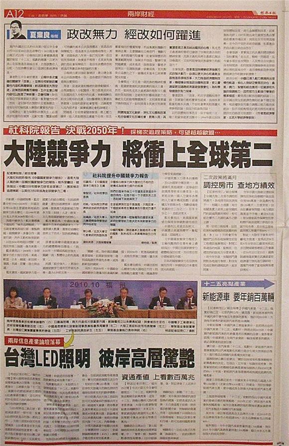 大陸社科院昨發布《中國國家競爭力報告》,這是大陸人寫的第一部關於國家競爭力的報告,格外受矚目。報告指出,中國2008年競爭力排名全球第17,應採梯次追趕策略,以期在2050年成為全球競爭力二哥。