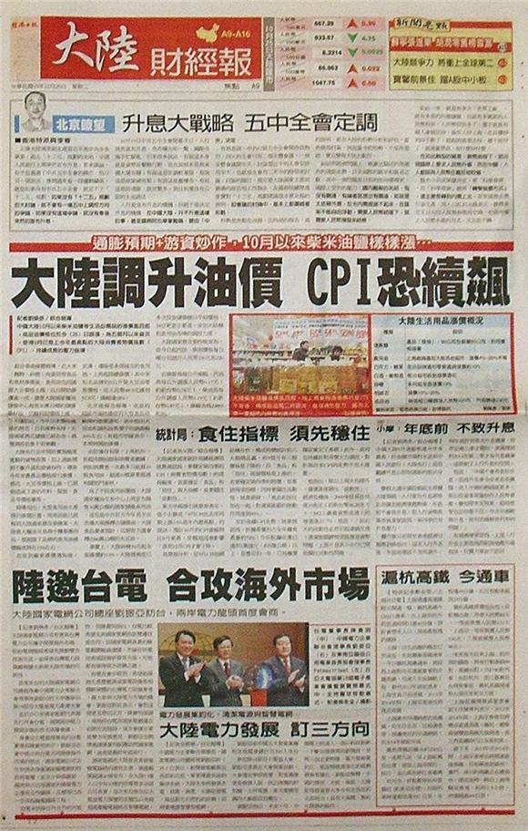 ■大陸調升油價 CPI恐續飆