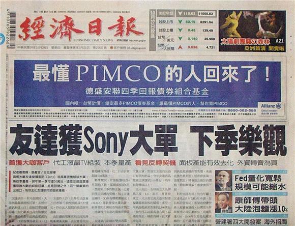 ◆經濟日報:友達獲Sony大單 下季樂觀