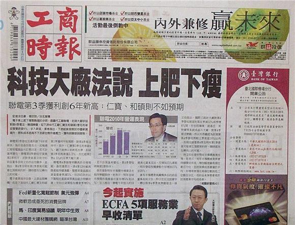 電子業上肥下瘦態勢趨於分明,晶圓代工廠聯電、封測大廠矽品對第4季看法,轉趨樂觀,但下游NB代工廠仁寶及和碩第3季毛利率卻雙雙跌破4%,步入新低。業者指出,下游組裝受限於中國薪資揚升、原料成本居高不下及新台幣升值壓力,獲利明顯受到限制。
