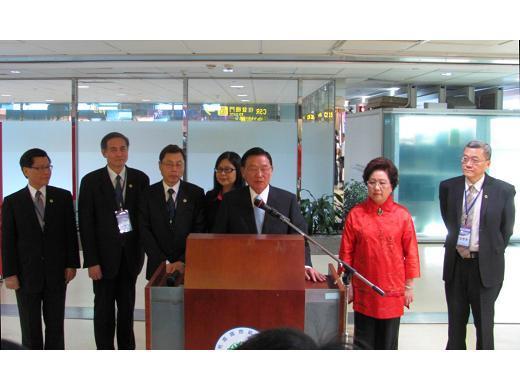 海基會董事長江丙坤中午抵達四川重慶。(記者劉曉霞攝)