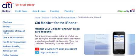 花旗的iPhone行動銀行服務。(圖:花旗官網)
