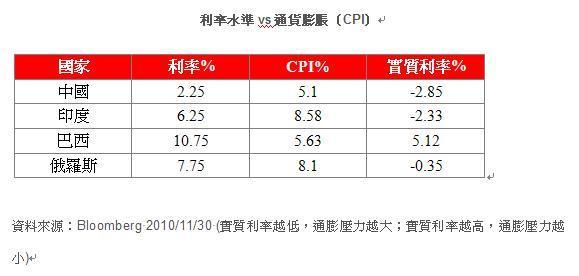 ※面對通膨壓力,2011年金磚四國皆可能升息二碼以上