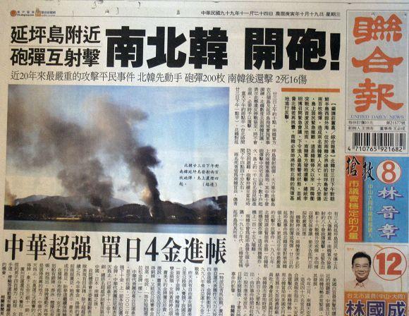 ◆聯合報:延坪島附近 南北韓開砲互轟 2死