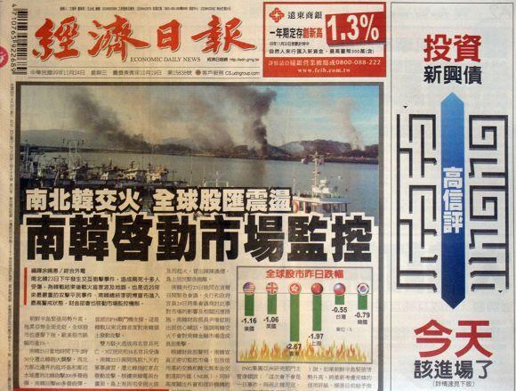 ◆經濟日報:南北韓交火 南韓啟動市場監控