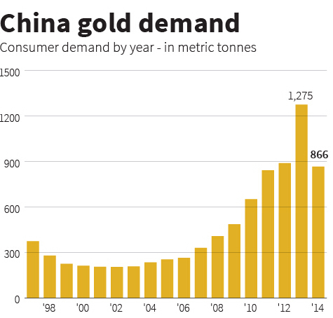 珠寶黃金需求在2014年同比下降9.7%,但除中國外,其他地區的需求則堅挺,發達國家可見更多買需。
