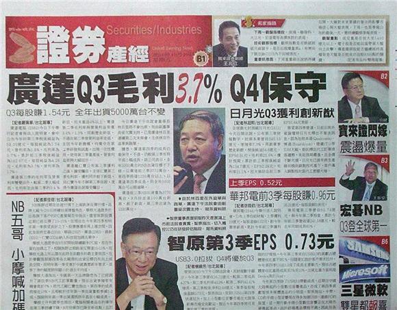 █廣達Q3毛利3.7% Q4保守
