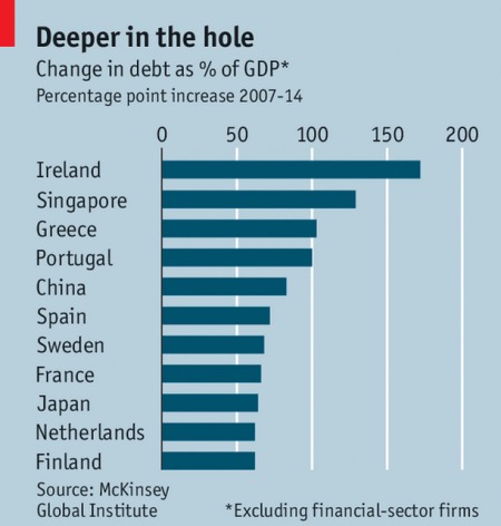 全球政府債務7年間增漲了25萬億美元。麥肯迪研究報告警告稱: