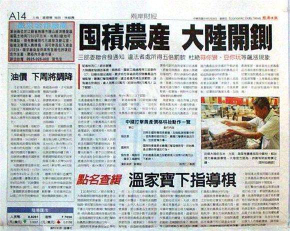 台灣主要報紙大陸版要聞標題一覽 (5月28日)