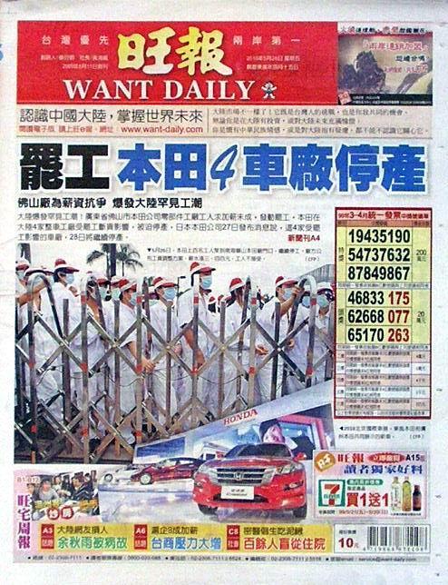 大陸爆發罕見工潮!廣東省佛山市本田公司零部件工廠工人求加薪未成,發動罷工,本田在大陸4家整車工廠受罷工斷貨影響,被迫停產,日本本田公司27日發布消息說,這4家受罷工影響的車廠,28日將繼續停產。