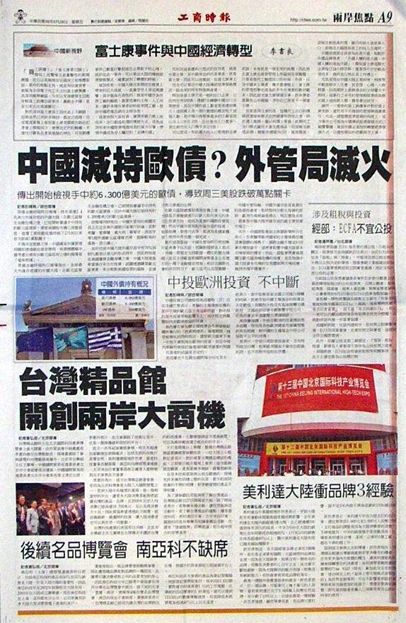 台灣精品館昨天在北京國際科技產業博覽會上盛大開幕,由外貿協會行銷處處長李惠玲擔任台灣館館長,現場嘉賓除了參與展覽的台灣廠商高層外,北京市台辦副主任王蘭棟、中國國際貿易促進委員會北京市分會副會長佘運高、中國國際貿易促進委員會北京市分會部長詹文清也盛襄出席。李惠玲表示此次參展除了技術交流外,也是一個商機磋和很好的平台。