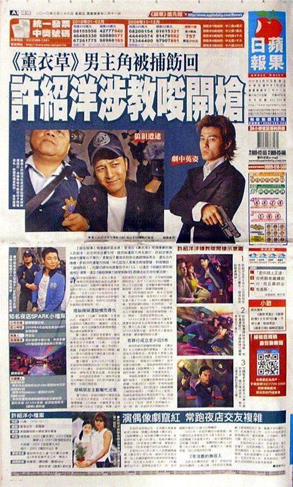 ◆蘋果日報:《薰衣草》男主角被捕飭回 許紹洋涉教唆開槍