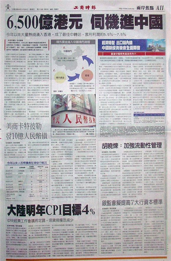 中國經濟前景看好,今年以來大量境外熱錢紛紛進駐香港,金額多達6,500億港元,準備伺機進入中國投資。而這些熱錢流入中國銀行、股市、房市,主要透過銀行金融機構、投資管道與地下融資通路,估計這幾年來數額已達1兆美元以上。