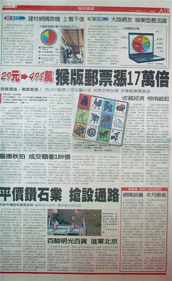■29元→498萬 猴版郵票漲17萬倍