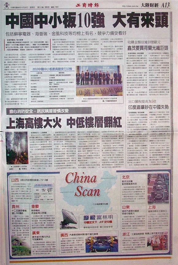 第8屆中國企業競爭力年會於昨(24)日在北京召開,會上發佈了「2010中國企業競爭力報告」,揭曉「2010中國最具競爭力上市公司20強」名單,而在中小板最具競爭力上市10強中,知名的蘇寧電器、海普瑞、金風科技、洋河酒廠均入列。 該年會自2003年起,由中國社科院工業經濟研究所、企業競爭力研究中心與中國經營報聯合主辦,透過對企業競爭力的監測,發現中國企業競爭力的現狀和變化趨勢。而在每年1度的中國企業競爭力年會上,除了發佈當年的「中國企業競爭力報告」,同時邀請中國各界精英,共同探討企業界的重大趨勢與