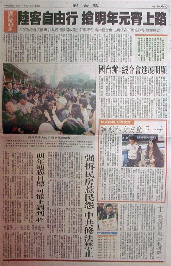 台灣主要報紙大陸版要聞標題一覽 (11月25日)