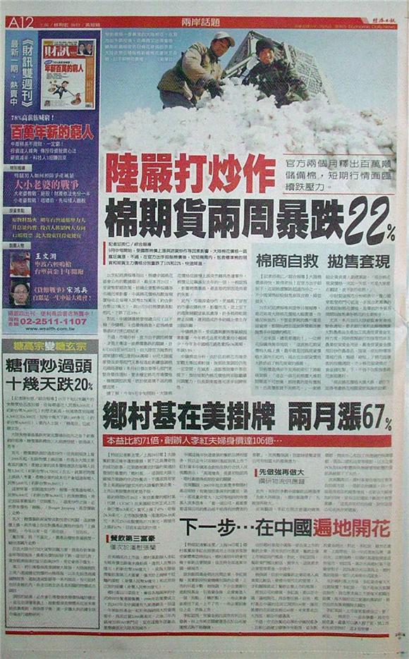 ■陸嚴打炒作 棉期貨兩周暴跌22%
