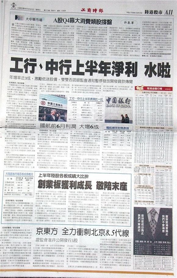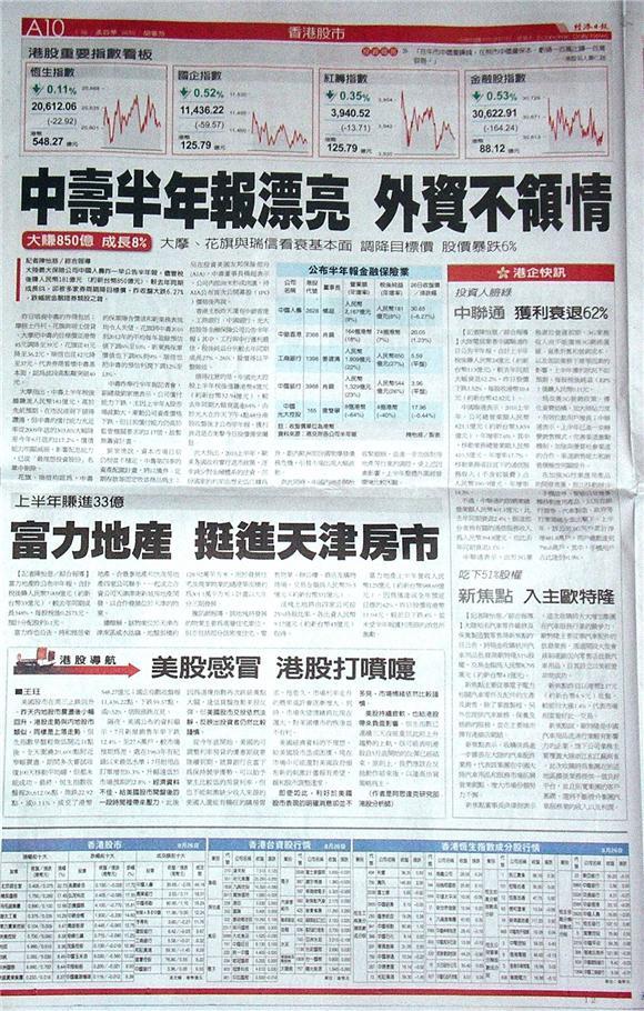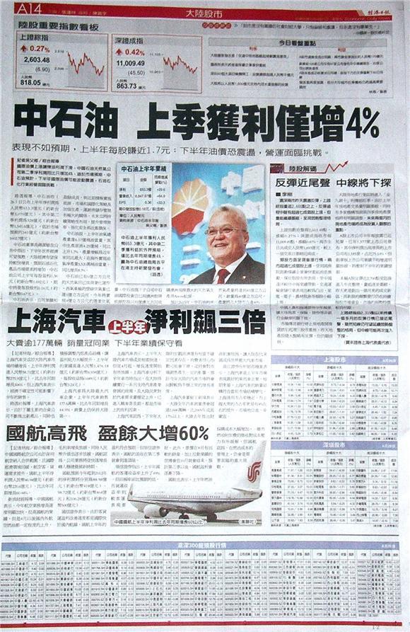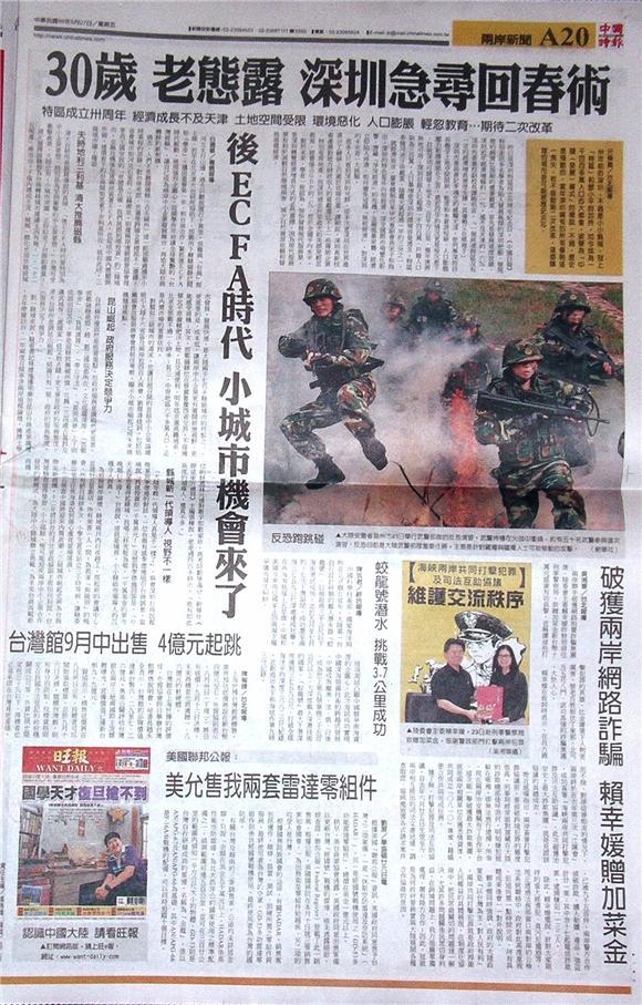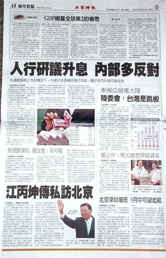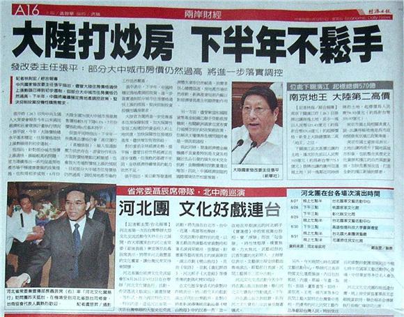 台灣主要報紙大陸版要聞標題一覽 (8月27日)