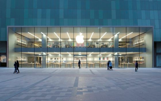 針對地域特點,這家店有些獨特之處:蘋果公司第一次在國內的官方零售店引入了屋頂融雪系統和電子地暖系統;此外還應用了最新的一些建築設計元素,包括線形照明系統,水磨石直梯及其上方的半透明LED天花板以及全玻璃製作的旋轉門。