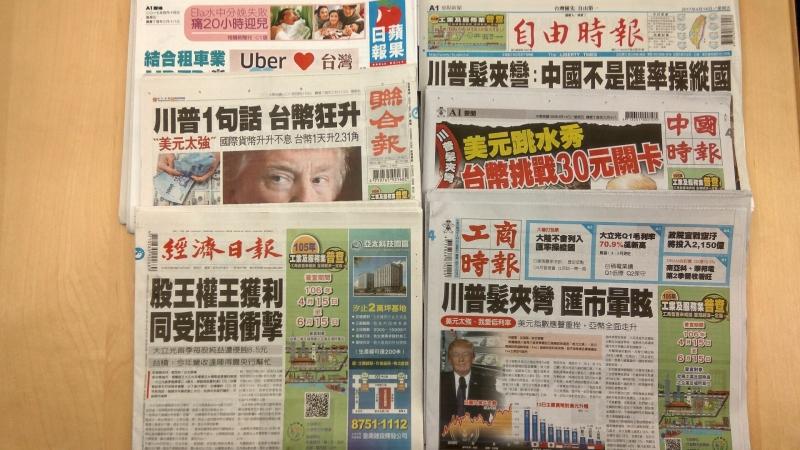 美國總統川普 12 日接受《華爾街日報》專訪時表示,美國不會把中國列為匯率操縱國,但他認為美元太過強勢,最終將傷害美國經濟,還表示支持低利率政策。消息一出,追蹤美元相對於一籃子貨幣的美元指數狂瀉,13 日亞洲盤一度跌至 100.01。新台幣則狂飆 2.31 角,挑戰 30 元整數關卡。