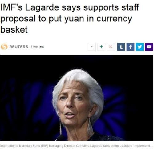 拉加德表示,IMF工作人員認為人民幣已經符合“被廣泛使用貨幣”這一條件。