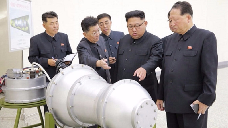 在本次核試驗的前 6 個小時前,北韓通訊社《朝中社》報導金正恩巡視「核試驗兵器化事業」,照片顯示,在寫著「火星 14 型核彈頭(氫彈)」的介紹看板前,金正恩正在撫摸彈頭模樣的金屬物體。
