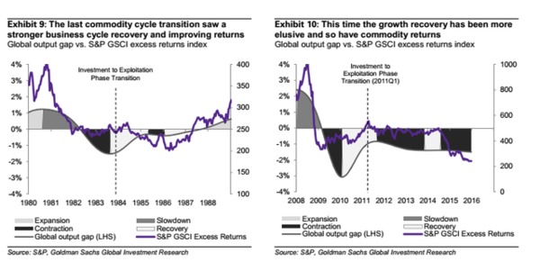 高盛指出,從2008年夏季以來,整體的商業周期依然處於最差的階段之中,持續時間之久為100年來之最。此外,opec在這次投資階段和利用階段轉換中也充當了額外的負面角色。