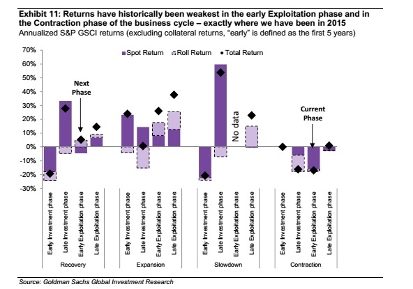 高盛表示,目前對於2015年末的大宗商品預判出現錯誤主要在於商業周期復甦的疲軟,但是這並不會改變商業周期之於大宗商品回報的架構觀點。