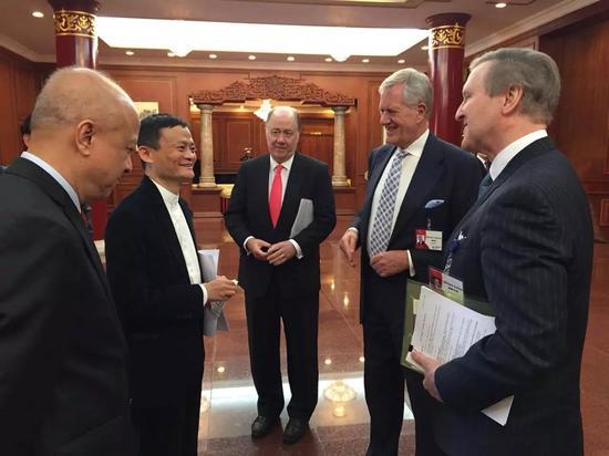 馬雲以“ DT(數字技術 Digital Technology)時代的特色”為主題作了分享,並與參會的20位跨國企業負責人作了相關話題討論,包括領導力、創新、變革、互聯網時代中美歐的機遇等。