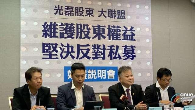 光磊今(10)日股東召開記者會,表態反對私募案。(鉅亨網記者林薏茹攝)