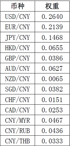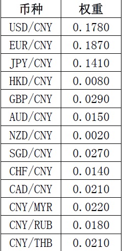 中國外匯交易中心公布的人民幣匯率指數演算法說明顯示,CFETS人民幣匯率指數參考CFETS貨幣籃子,具體包括中國外匯交易中心掛牌的各人民幣對外匯交易幣種,樣本貨幣權重采用考慮轉口貿易因素的貿易權重法計算而得。樣本貨幣取價是當日人民幣外匯匯率中間價和交易參考價。指數基期是2014年12月31日,基期指數是100點。