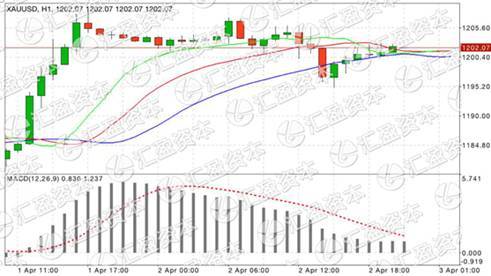 走勢分析:今日黃金價格上方阻力位:1206、1215、1220,強弱分界線:1190,下方支撐位:1180、1174