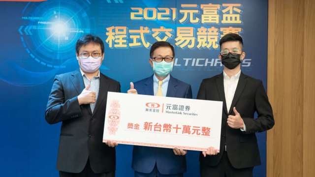 新光金控旗下元富證券持續推動金融教育,今年與凱衛資訊合作舉辦「元富盃程式交易競賽」,在嚴守各項防疫措施下,決賽於今 (7) 日圓滿落幕,社會組黃靖傑和學生組曾貫岑分別獲冠軍獎金 10 萬元,由元富證券總經理李明輝代表授獎。