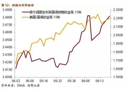 我們前面研究的各種聯動機制其實體現了資本流動、國際貿易、匯率等中美兩國利率的具體影響渠道。預期與上述聯動機制不同,它是投資者根據過去的經驗對未來收益率走勢的預判,因而不涉及資本流動等渠道,其特點是快速發生,存在極短的時滯。