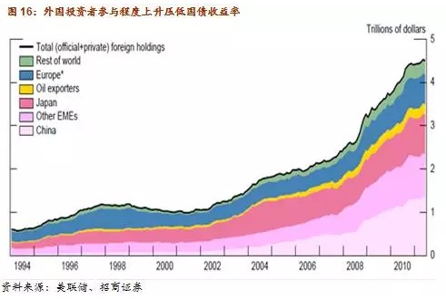 國債替代性因素中提到了全球設定的債券投資者,各國央行或貨幣當局是全球債券市場的重要參與者。我們在《中國版“利率之謎”》系列報告中分析了外國官方投資者對美國國債市場的重要影響,美聯儲的政策利率對本國長端國債收益率的引導作用正在下降。外國官方投資者的存在也成為全球利率聯動性上升的重要因素。