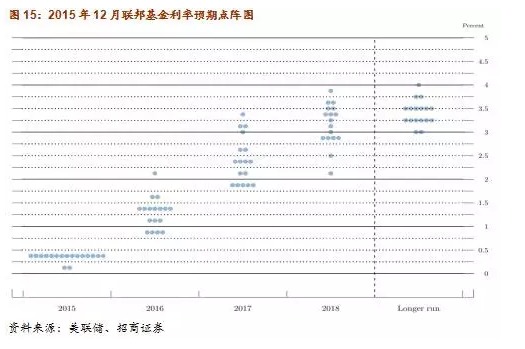 首先,美聯儲加息時點的不確定性導致全球資金風險偏好的不斷下降,從2013年起全球流動性呈現收縮態勢,我們判斷目前可能是全球流動性階段性的底部。但隨著美聯儲加息靴子的落地,推動資金回流歐美市場的不確定因素就會下降。從這個角度看,風險偏好的回升將成為資金流向新興經濟體的重要因素。並且,今年以來美聯儲官員對2015-2017年聯邦基金利率的預期中值處於持續回落的過程,這表明美聯儲加息的頻率和力度可能將低於此前的預期,這對於全球流動性的穩定有極大的幫助作用。