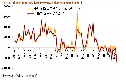 由此可見,美元成為強勢貨幣之后,企業融資渠道對中美利率聯動的影響很有可能式微,由於中國央行2014年持續致力於降低實體經濟融資成本,國內私人部門負債幣種的切換可能很難引起中國各項融資利率的上行。